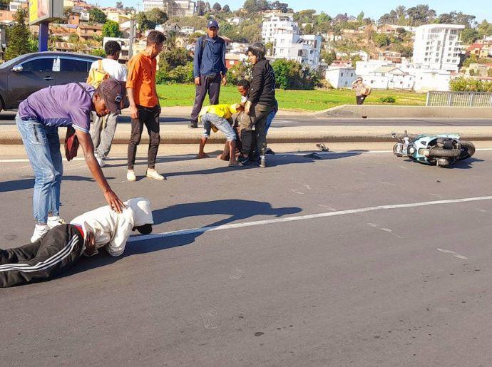 À Ambatoroka, le 6 août 2024, un motard tente un dépassement. Il chute. Un camion arrive en sens inverse. L’impact est fatal. L’Express Madagascar et Moov relatent un choc d’une violence extrême. Les enquêteurs évoquent un dépassement dangereux et une mauvaise anticipation