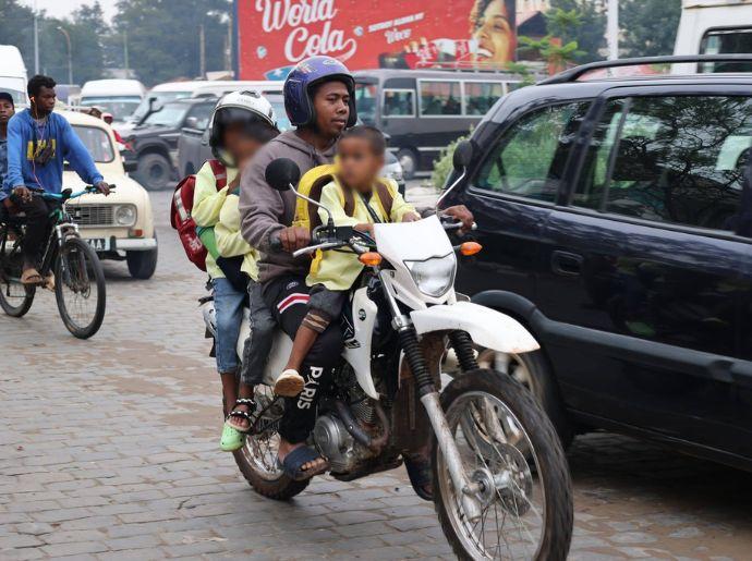 Chez les piétons, les traversées soudaines sont fréquentes. Les rues d’Antananarivo manquent de trottoirs (occupés par les marchands ambulants). Les piétons marchent sur la chaussée. La visibilité est faible le soir. Ces comportements deviennent dangereux lorsqu’un motard arrive à vive allure.