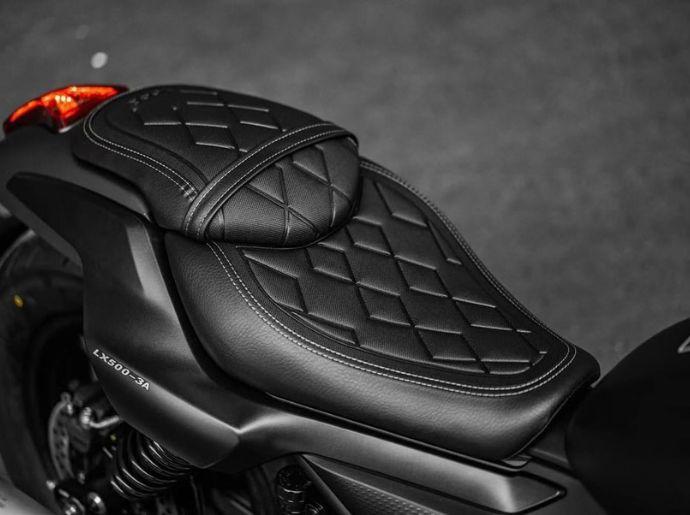 La faible garde au sol de 160 mm et la position de conduite basse favorisent une posture détendue, idéale pour pour les trajets nationaux de longue distance. Cette moto