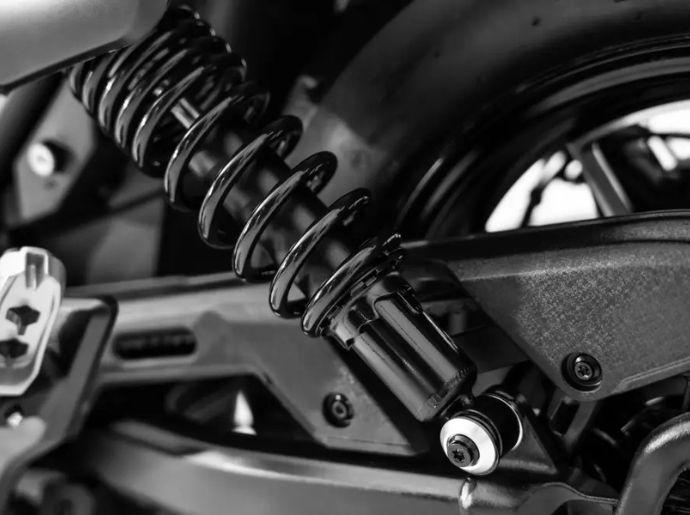 Les roues en alliage chaussées de pneus 130/90-16 à l’avant et 150/80-16 à l’arrière donnent à la machine une assise solide et imposante.