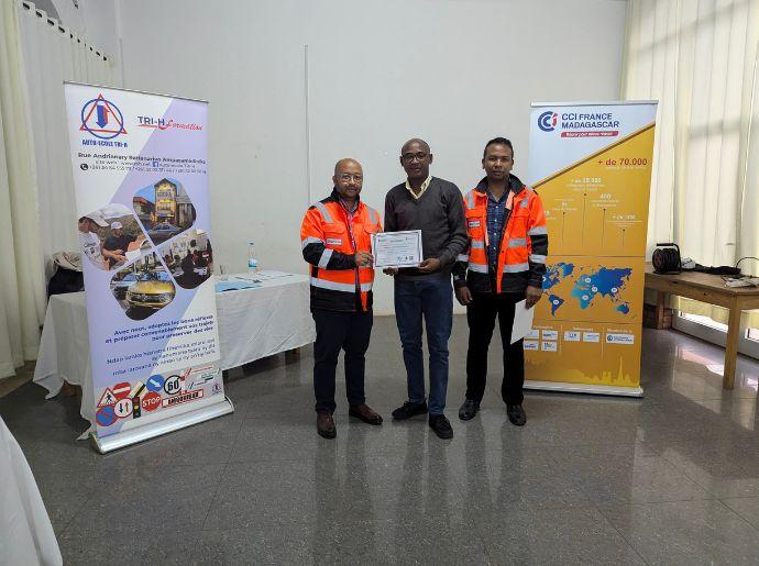 Les 21 et 22 octobre 2025, six chauffeurs de Materauto ont suivi une formation certifiante sur la sécurité et le civisme au volant. Cette session s’est déroulée à la CCIFM Androhibe, en partenariat avec l’Auto‑Ecole Tri‑H, sis à Ampasamadinika.